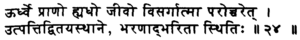 सूत्र – 24 हमें श्वास यानि साँस के प्रति सजग रहने को कहता है | हमारा जीवन श्वास पर टिका हुआ है यानि हमारे जीवन की धुरी साँस है | यह सूत्र बताता है कि साँस के आने और जाने पर ध्यान केन्द्रित करें |